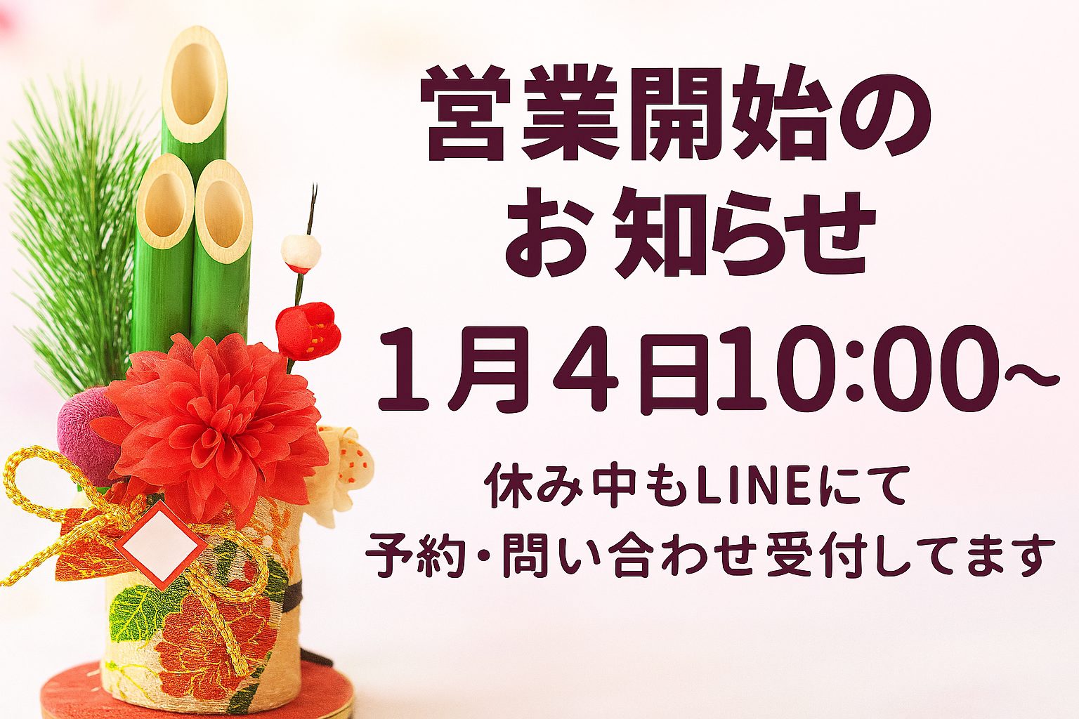 年末年始のお知らせ・12月26日は営業します